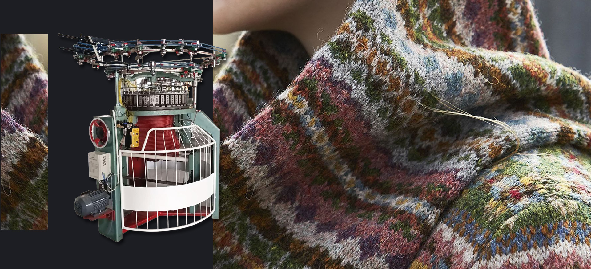 本機結構進行優化設計,采用浸油式齒輪傳動,具有高轉速、低噪音等特點。四段菱角設計,根據客戶需要,通過調整不同的菱角排列達到編織各種單面組織的織物要求,可生產:頭巾布、圍脖、氨綸汗布、正包、反包、毛圈、發圈、各種網眼布、塑料網袋等產品。
